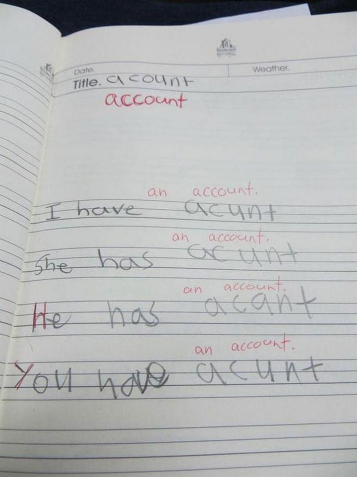 While inappropriate, these are funny spelling mistakes and they must have brought a small chuckle to any teacher who had to correct their work. If you enjoyed these, please share with friends and family and don’t miss funny test answers or kids that are way too clever.
