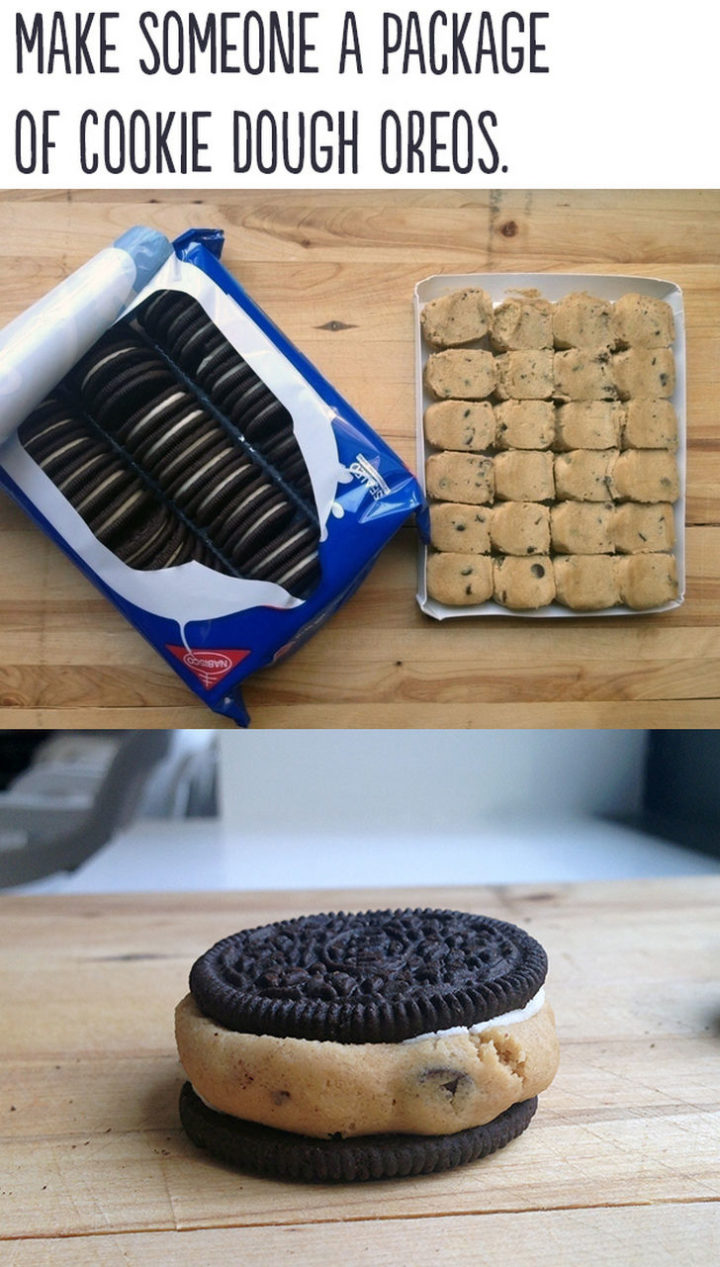 Make someone a package of cookie dough Oreos. Here’s a recipe for cookie dough that’s safe to eat.