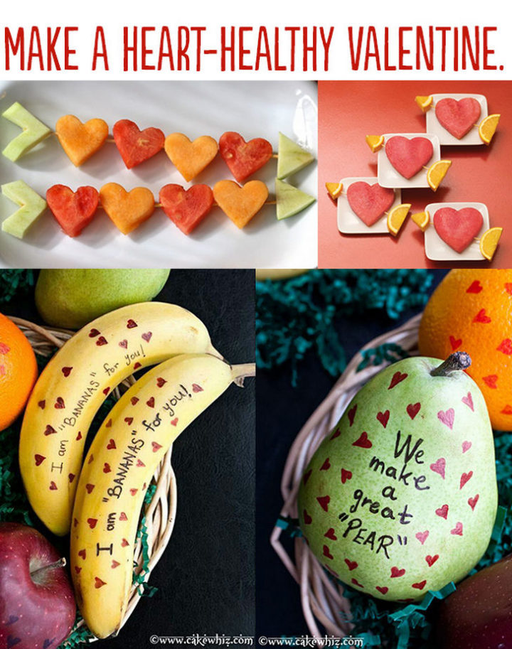 Make a heart-healthy Valentine. Build arrow fruit directions, make healthy hearts, or create fruit messages.