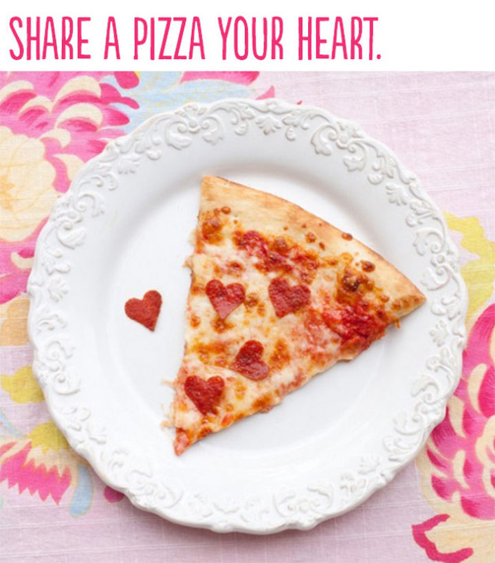 Share a pizza with your heart. Here’s an excellent pepperoni pizza recipe. All you need to do is use a small heart-shaped cookie cutter to make heart-shaped slices of pepperoni.