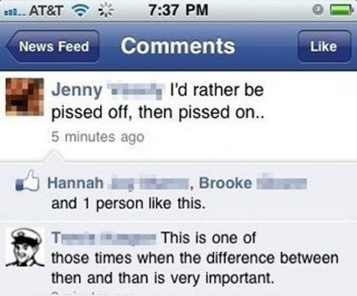 “I’d rather be pissed off, then pissed on. This is one of those times when the difference between then and than is very important.”