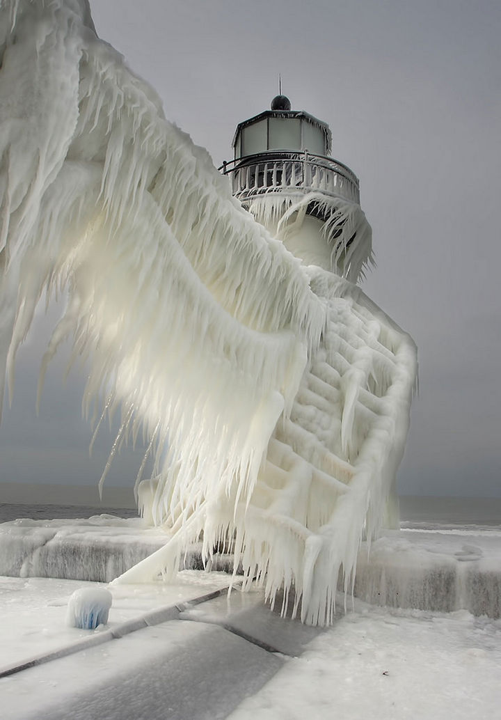 3) Frozen Lighthouses on Lake Michigan Shore.
