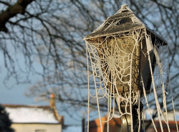 10) Frost forming icicles on a metal fence.