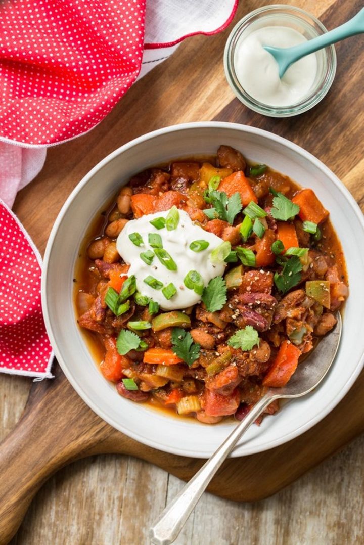 An awesome chili recipe by Jamie Oliver using beans and chickpeas. Get the recipe!
