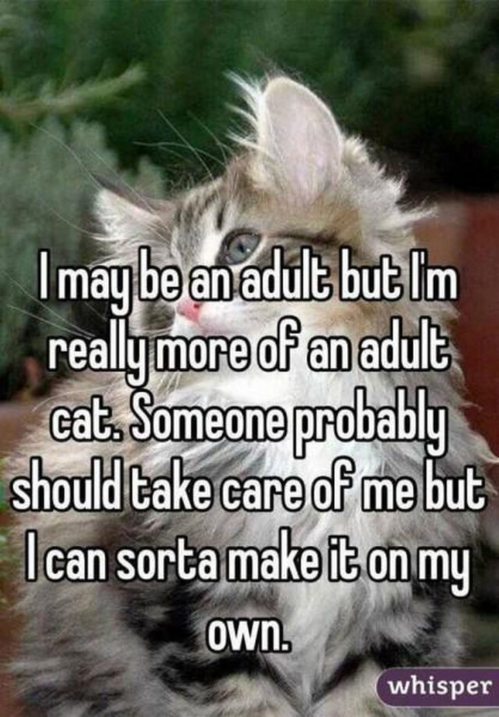“I may be an adult but I’m really more of an adult cat. Someone probably should take care of me but I can sorta make it on my own.”