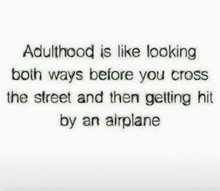 “Adulthood is like looking both ways before you cross the street and then getting hit by an airplane.”