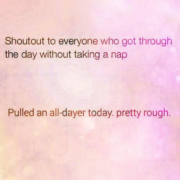 “Shoutout to everyone who got through the day without taking a nap. Pulled an all-dayer today. Pretty rough.”