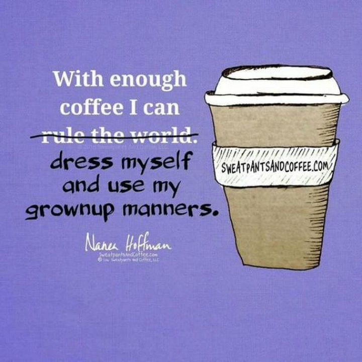 “With enough coffee, I can rule the world dress myself and use my grownup manners.”