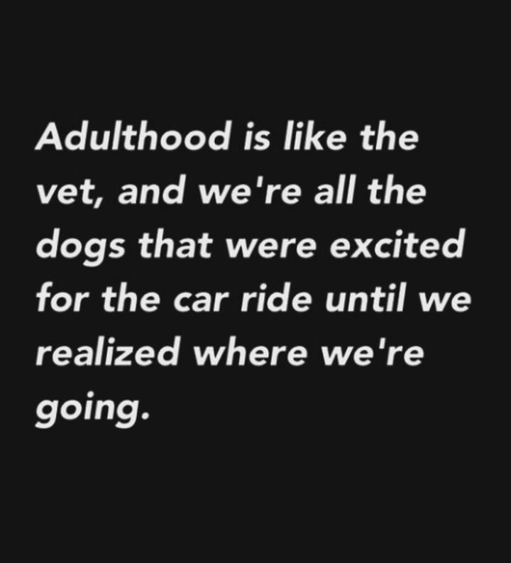 “Adulthood is like the vet, and we’re all the dogs that were excited for the car ride until we realized where we’re going.”