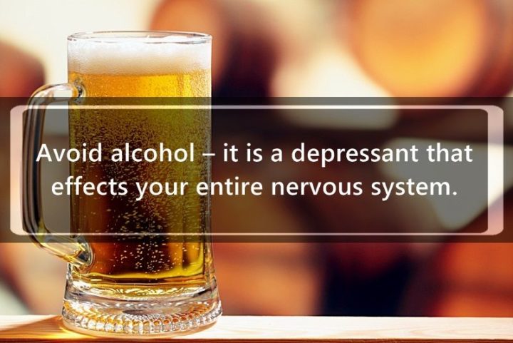 Avoid alcohol – it is a depressant that affects your entire nervous system. As a bonus, skipping alcoholic drinks helps with weight loss.