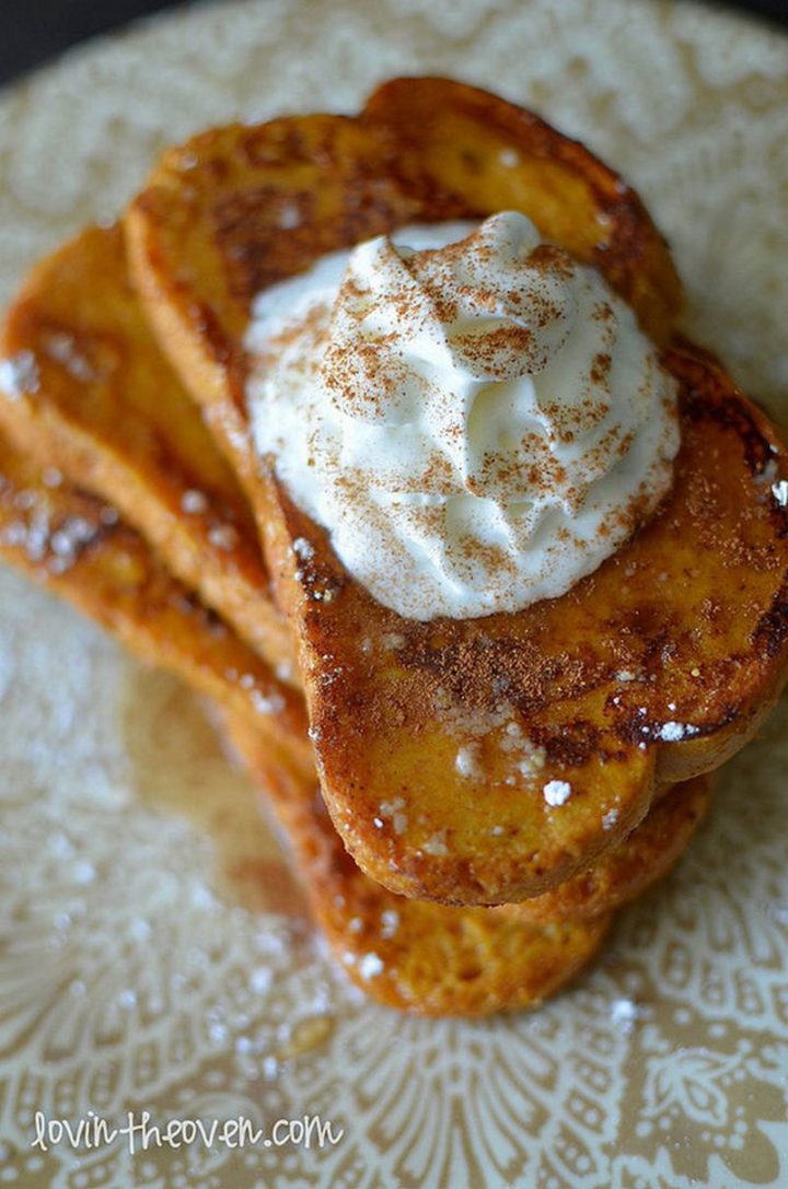 French toast with pumpkin and pumpkin pie spices, yummy. Get the recipe!