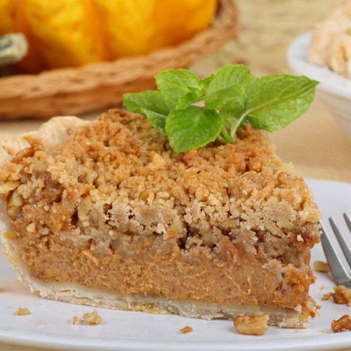 A great pumpkin pie recipe with a crunchy streusel topping. Get the recipe!