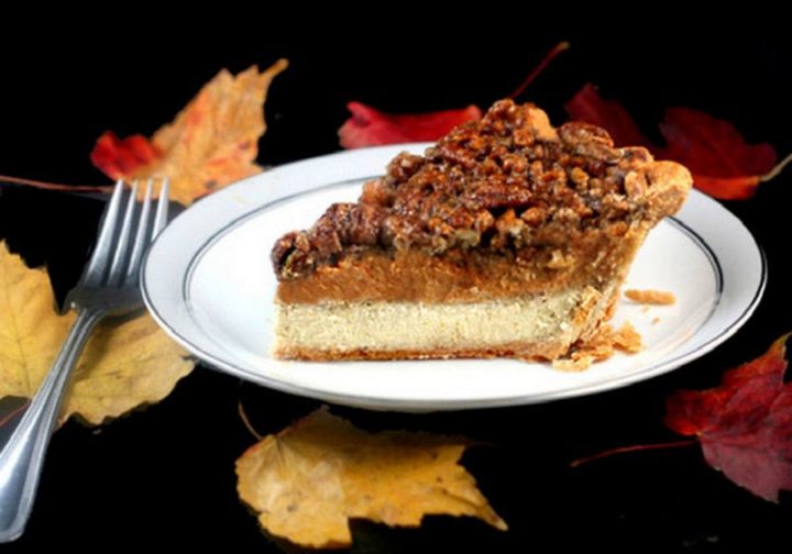 17) Three Pies in One – Cheesecake Pumpkin Pecan Pie