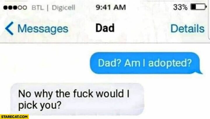 1) “Dad? Am I adopted? No why the [censored] would I pick you?”