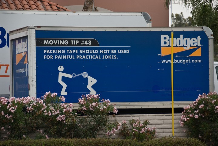“Moving tip #48: Packing tape should not be used for painful practical jokes.”