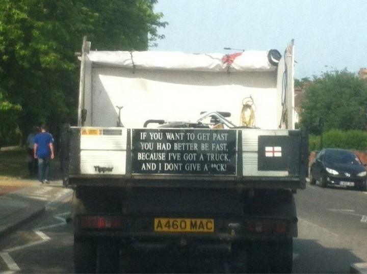 “If you want to get past, you had better be fast, because I’ve got a truck, and I don’t give a f***!”