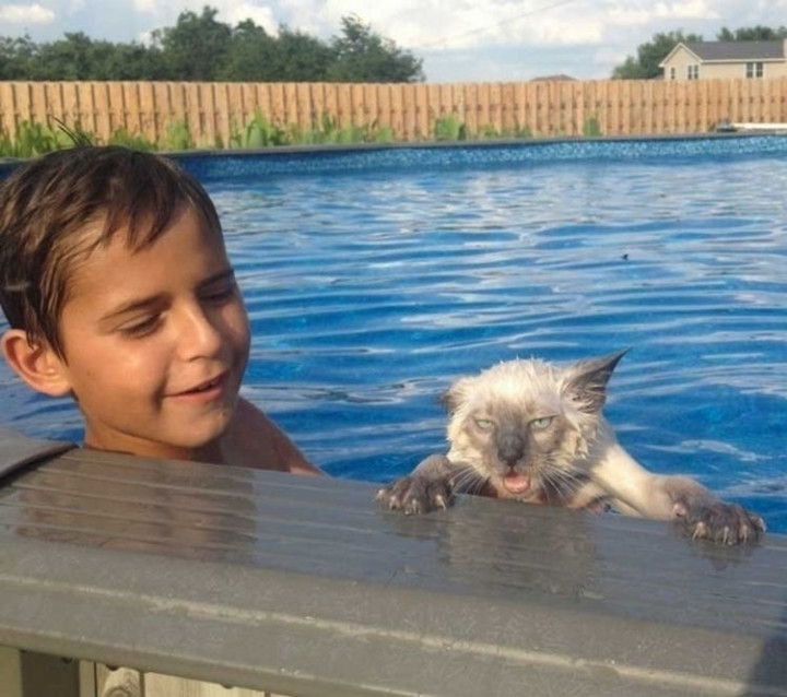 13) By the look on his face, this cat has no interest whatsoever in learning how to swim.
