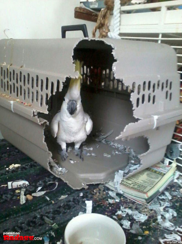 15) No pet crate is big enough for this bird.