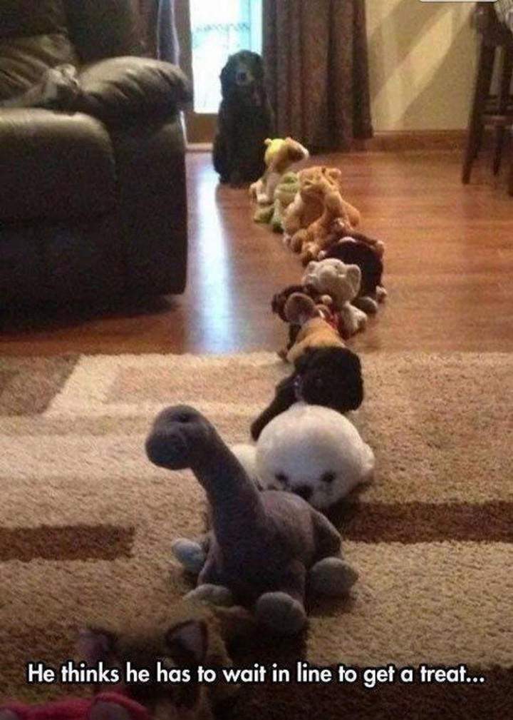 “He thinks he has to wait in line to get a treat…”