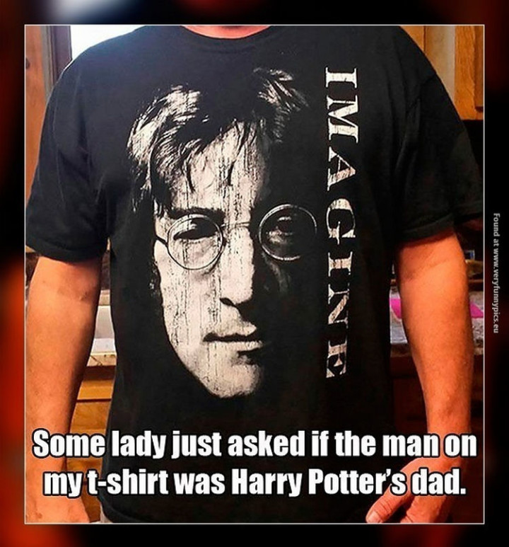 “Some lady just asked if the man on my t-shirt was Harry Potter’s dad. Imagine.”
