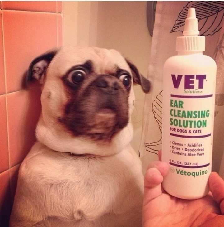 32) This dog may feel relieved when realizes that bottle is only going into his ears.