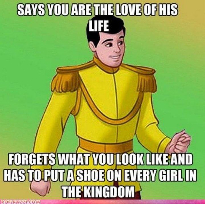 “Says you are the love of his life. Forgets what you look like and has to put a shoe on every girl in the kingdom.”