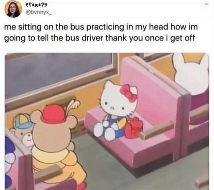 “Me sitting on the bus practicing in my head how I’m going to tell the bus driver ‘thank you’ once I get off.”