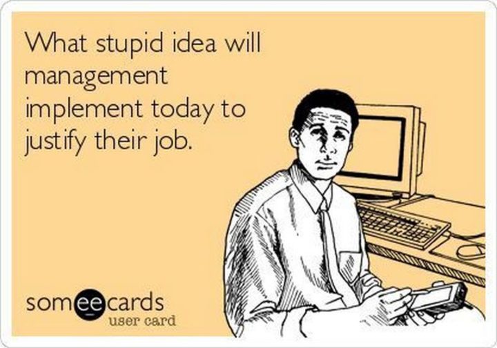 “What stupid idea will management implement today to justify their job.”