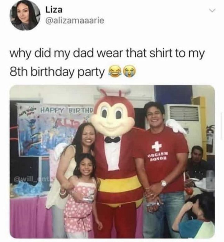 “Why did my dad wear that shirt for my 8th birthday party?”