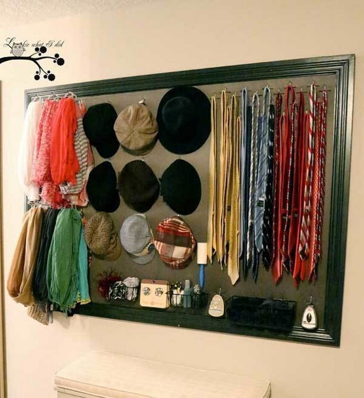 19) Keep your sewing thread neatly organized with DIY framed thread holder.