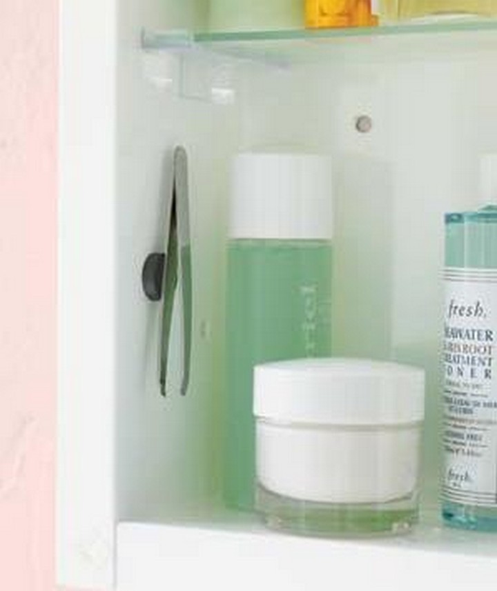 Tweezers always seem to be hiding behind a jar or bottle when you need one. Prevent this from happening by installing a magnet inside the medicine cabinet.