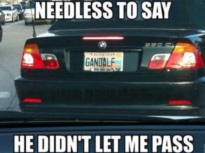 “Needless to say, he didn’t let me pass. [Gandalf license plate]”