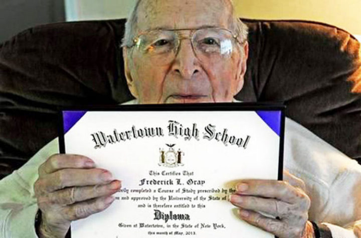 After retirement, WWII veteran Frederick Gray felt the need to accomplish something he always wanted and worked hard to get his high school diploma from Watertown High School.