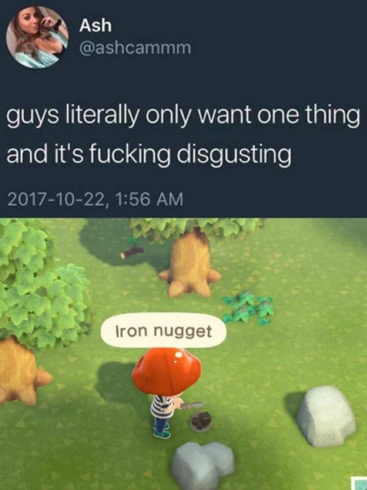 !["Guys literally only want one thing in Animal Crossing and it's [censored] disgusting: Iron nugget."](https://www.winkgo.com/wp-content/uploads/2022/04/animal-crossing-memes-21-720x960.jpg)