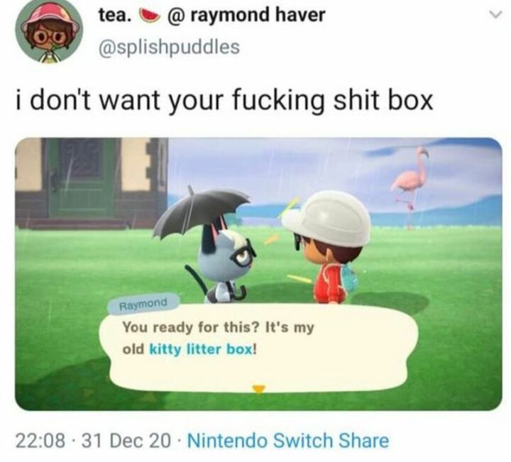 !["I don't want your [censored] [censored] box: You ready for this? It's my old kitty litter box!"](https://www.winkgo.com/wp-content/uploads/2022/04/animal-crossing-memes-63-720x651.jpg)