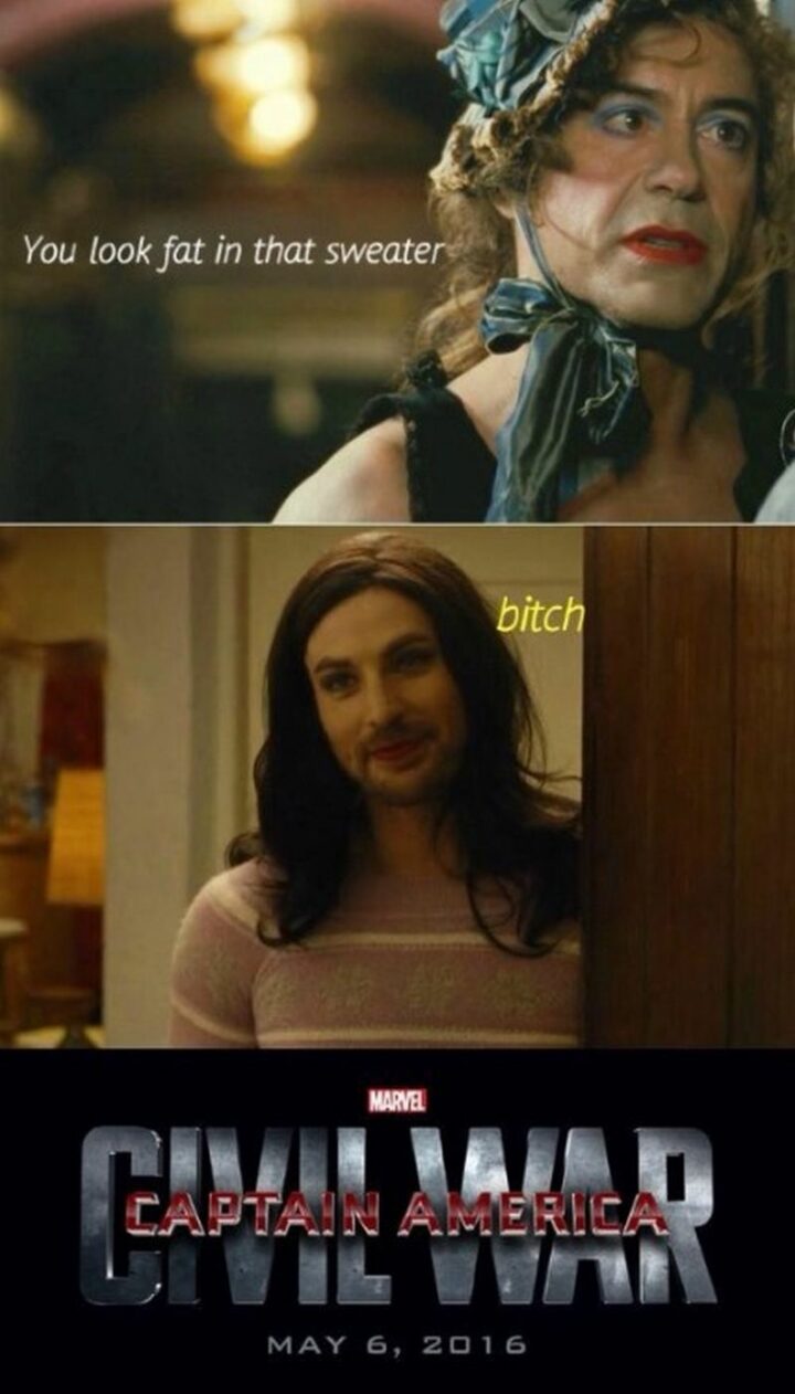 “Captain America: Civil War: You look fat in that sweater. [censored].”