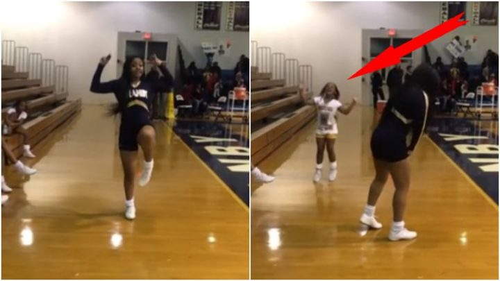 Watch this priceless moment when a little girl joins in on her big sister’s cheer solo…