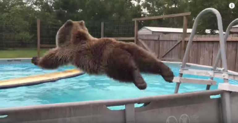 Watch Bruiser Bear taking a dive in this swimming pool…