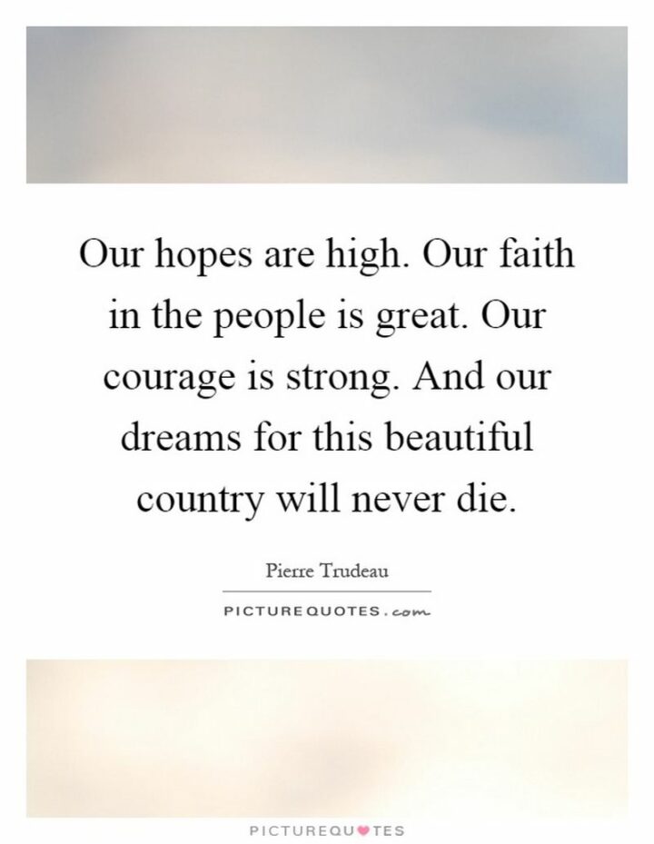 29) “Our hopes are high. Our faith in the people is great. Our courage is strong. And our dreams for this beautiful country will never die.” – Pierre Trudeau