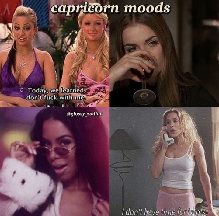 ![Capricorn moods: Today, we learned don't [censored] with me. I don't have time for idiots."](https://www.winkgo.com/wp-content/uploads/2022/02/capricorn-zodiac-memes-40-720x710.jpg)