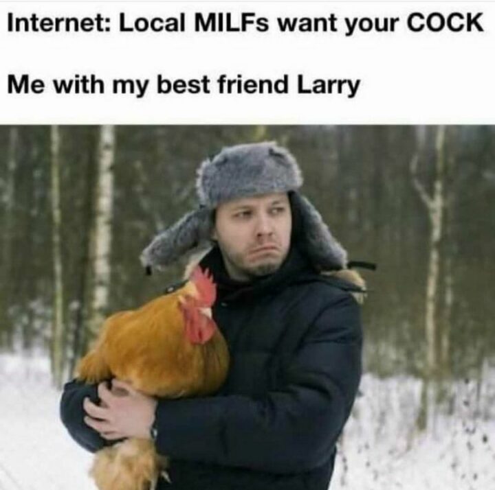 !["Internet: Local MILFs want your [censored]. Me with my best friend Larry."](https://www.winkgo.com/wp-content/uploads/2022/11/chicken-memes-18-720x714.jpg)