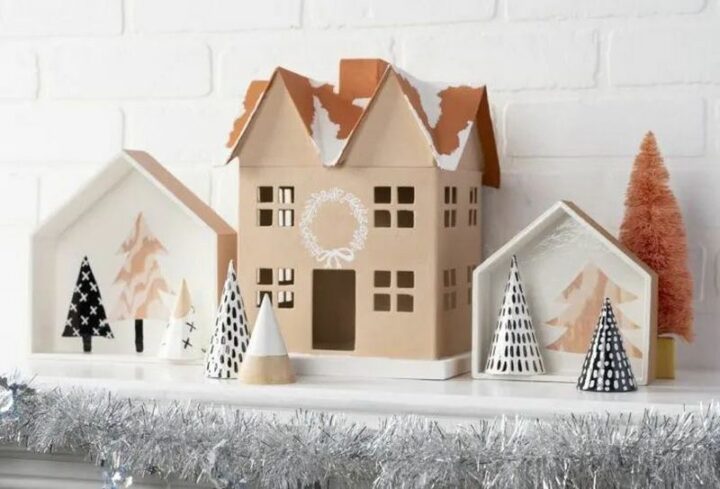 Once you’ve made your village and miniature Christmas trees, you can display them on a shelf, table, or mantel. Start your own DIY Christmas village today! Get the tutorial.