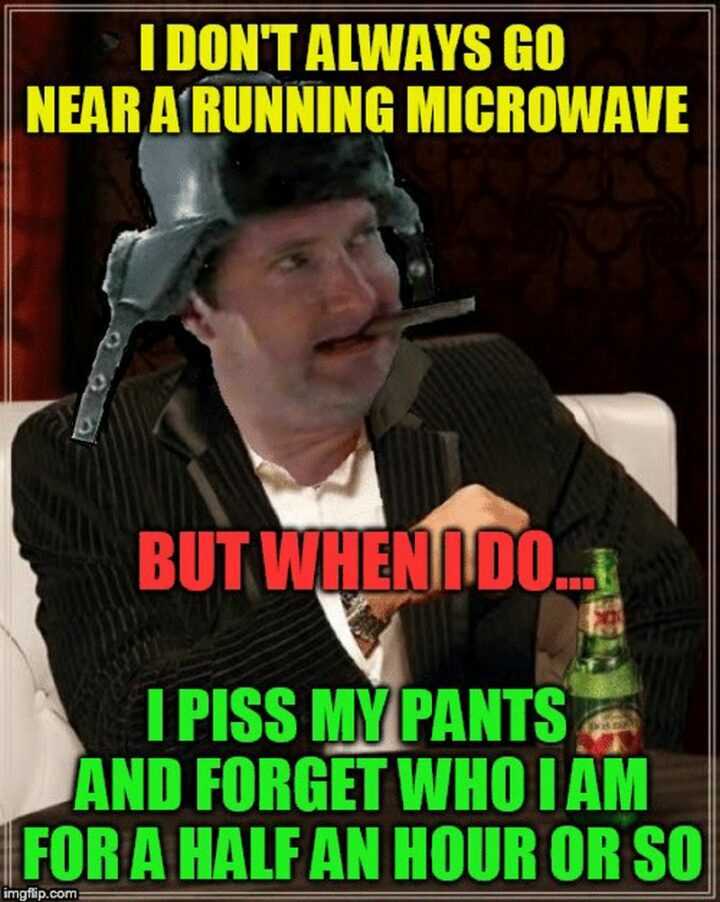 “I don’t always go near a running microwave but when I do…I [censored] my pants and forget who I am for half an hour or so.”