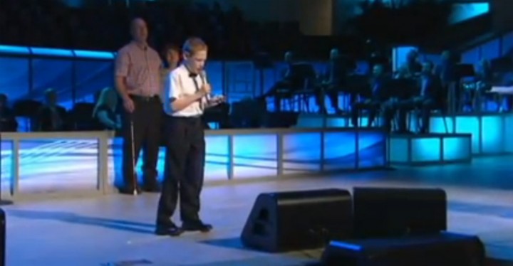 Now at 13 years old, he is an inspiration to everyone he meets and sings at several functions and events. He has perfect pitch and gives thanks to the Lord for his ability to give back to others with his amazing voice. In this performance, he sings a touching version of ‘Open the Eyes of My Heart’ at the Prestonwood Baptist Church in Plano, Texas.