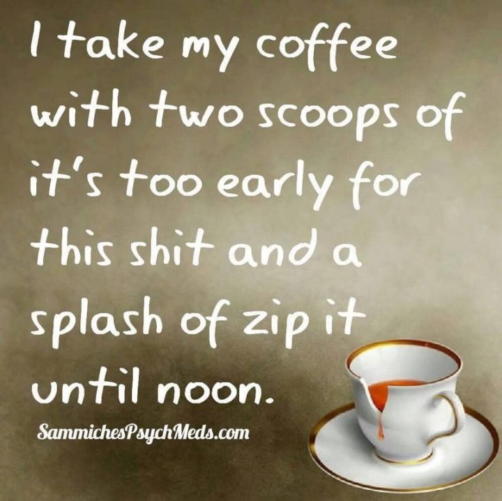 “I take my coffee with two scoops of it’s too early for this [censored] and a splash of zip it until noon.”