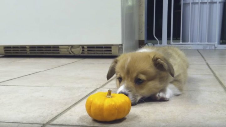 Watch this adorable corgi puppy that can’t deal with a mini pumpkin…