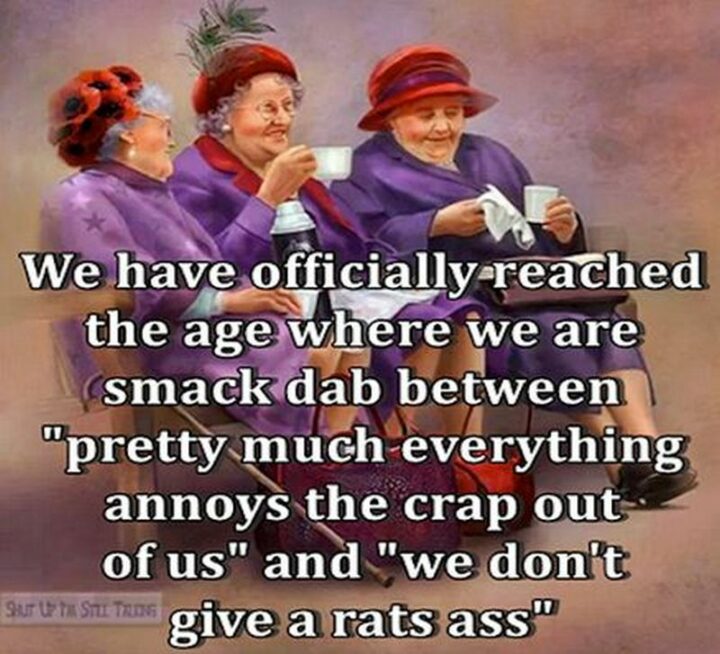 “We have officially reached the age where we are smack dab between ‘pretty much everything annoys the crap out of us’ and ‘we don’t give a rat’s [censored]’.”