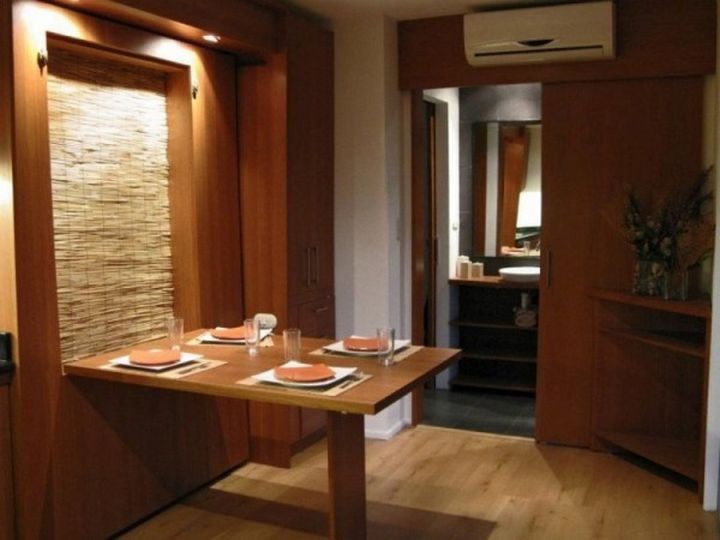 There is a Murphy double bed that can be used as the main bedroom or as a bed for guests.
