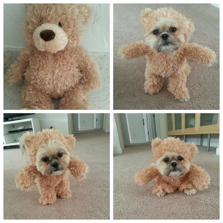 Please share Munchkin the Shih Tzu showing off her teddy bear costume with your friends and family.