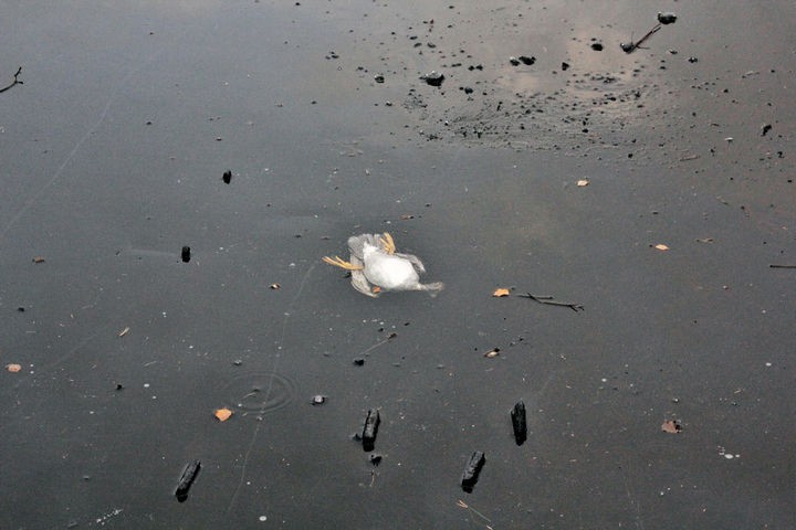 The duck then passed through the ice and was stuck underneath the ice and unable to break to the surface.